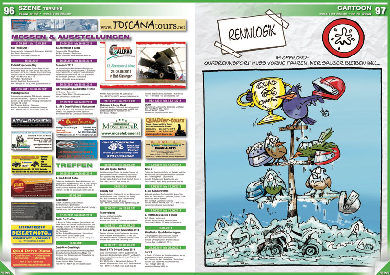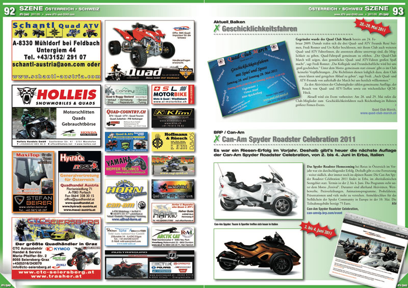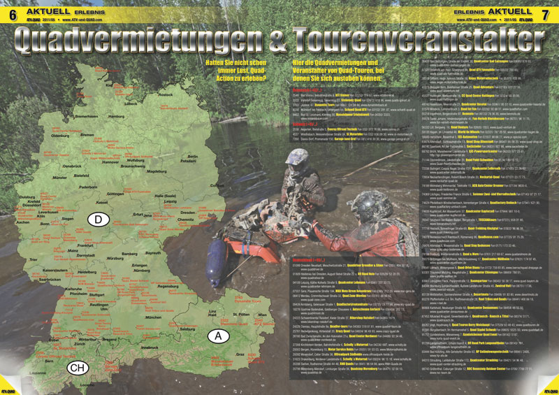 Unsere Übersicht über Quadvermietungen und Tourenveranstalter in Deutschland, Österreich und der Schweiz haben wir aktualisiert und präsentieren auf Seite 6 und 7 auf einer Landkarte des deutschsprachigen Raums 60 Unternehmen, bei denen vom ersten ‚Gehversuch‘ mit dem Krabbelzeug bis hin zum Hardcore-Event im extremen Offroad vielfältiger Quadfahrspaß angesagt ist…