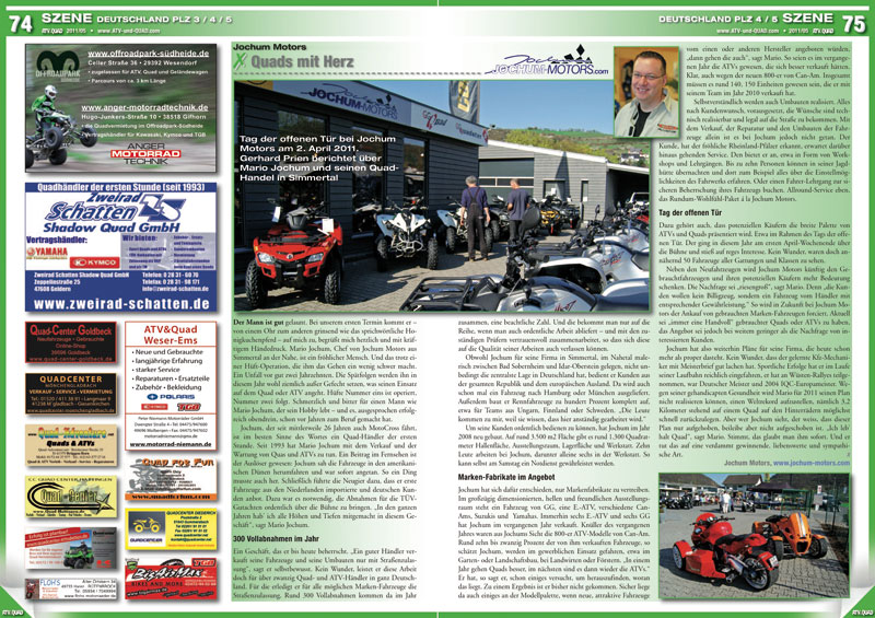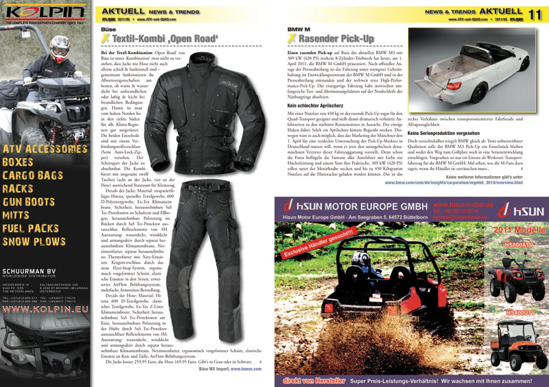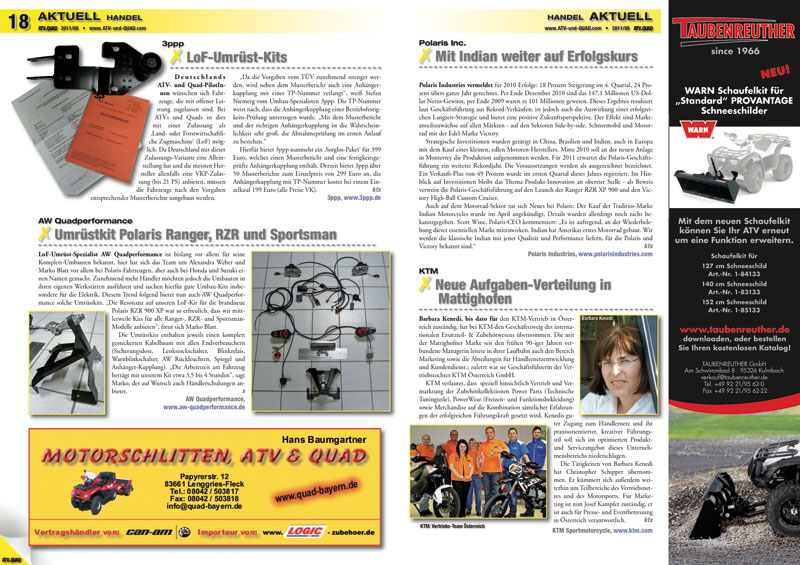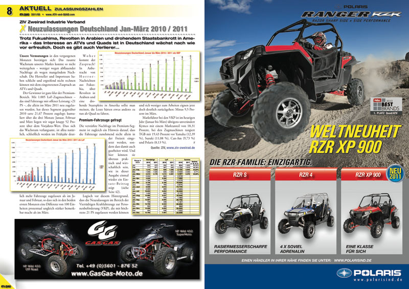 Trotz Fukushima, Revolten in Arabien und drohendem Staatsbankrott in Amerika – das Interesse an ATVs und Quads ist in Deutschland wächst nach wie vor erfreulich. Doch es gibt auch Verlierer… auf Seite 8