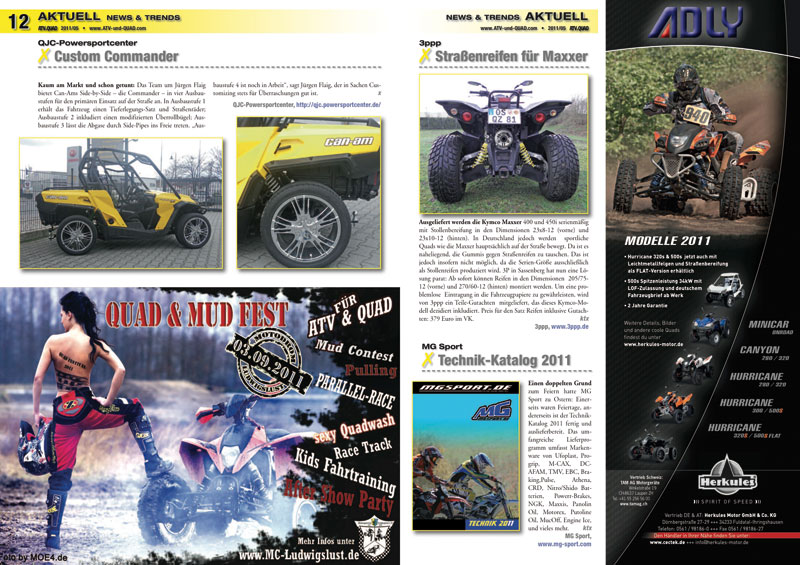 Adly, Aeon, Can-Am, GG Quad, Herkules Motor, Honda, Kawasaki, Kymco, Polaris, Yamaha; Performance-Parts, Straßen-Umbauten, Quad-Events