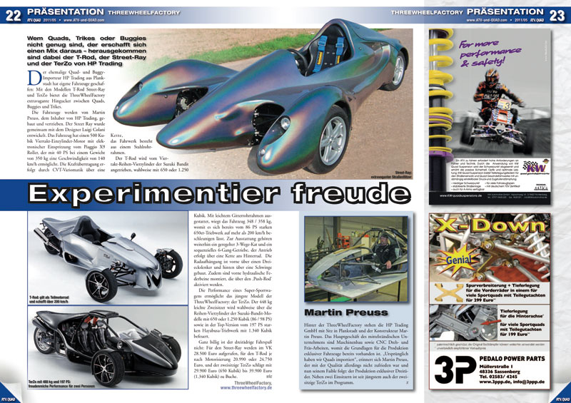 Experimentierfreude: Wem Quads, Trikes oder Buggies nicht genug sind, erschafft sich einen Mix daraus – herausgekommen sind dabei der T-Rod, der Street-Ray und der TerZo von HP Trading… Seite 22-23
