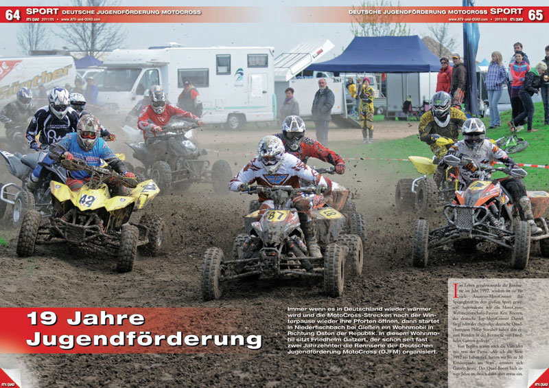 19 Jahre Deutsche Jugendförderung: Motocross-Rentner Friedhelm Gatzert ist wieder auf seiner Mission: Immer wenn es in Deutschland wieder wärmer wird und die MotoCross-Strecken nach der Winterpause wieder ihre Pforten öffnen, dann startet in Niederfischbach bei Gießen ein Wohnmobil in Richtung Osten der Republik. In diesem Wohnmobil sitzt Friedhelm Gatzert, der schon seit fast zwei Jahrzehnten die Rennserie der Deutschen Jugendförderung MotoCross (DJFM) organisiert… Seite 64-66