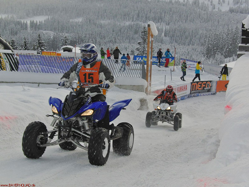Heißblütig und hart gekämpft wurde dann freilich auch in den gewerteten Klassen. Gesteigert wurden Spaß und Spannung noch durch den Streckensprecher Wolfgang Knoll, der mit seinen verbalen und emotionalen Ausbrüchen und seinen vielen Vergleichen zu den großen Stadtrennen und ihren Helden alle Anwesenden großartig unterhielt. In drei Vorläufen sammelten die ATV- und Quad-Fahrer ihre Punkte für die Einteilung in den Endläufen. Für die großen Finals des Tages schnallten sogar die Skifahrer ihre Brettl ab und umrahmten gespannt die Strecke. Am Ende sicherte sich in der vierradgetriebenen Klasse Harry Russert aus Willmenrod den Pokal vor Sepp Aichbichler aus Benediktbeuern und Günther Voit aus Sandelzhausen. Bei den Sportquads schaffte es der ehemalige Cup-Sieger Peter Roßberger aus Sindelsdorf, den vorjährig ungeschlagenen Klaus Fleckinger aus Pettnau auf Platz zwei zu verweisen. Sebastian Gundhardt aus Iffeldorf sicherte sich Platz 3.