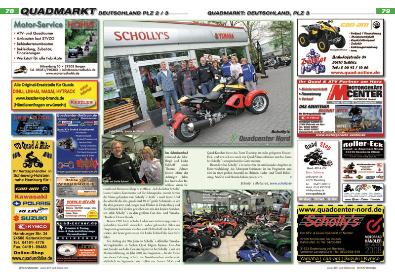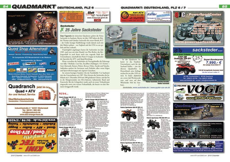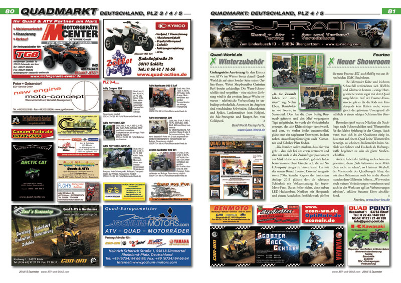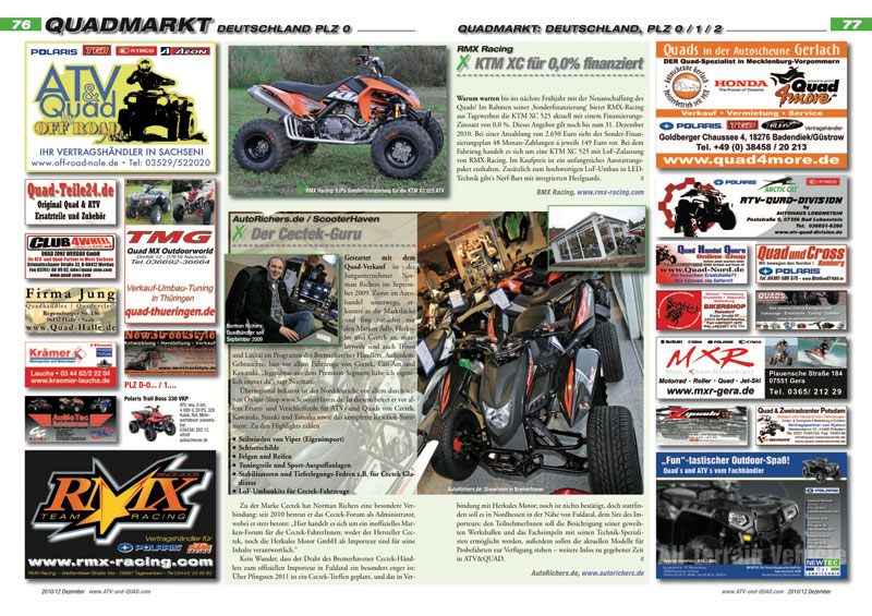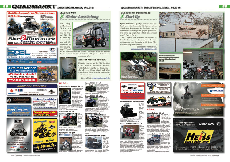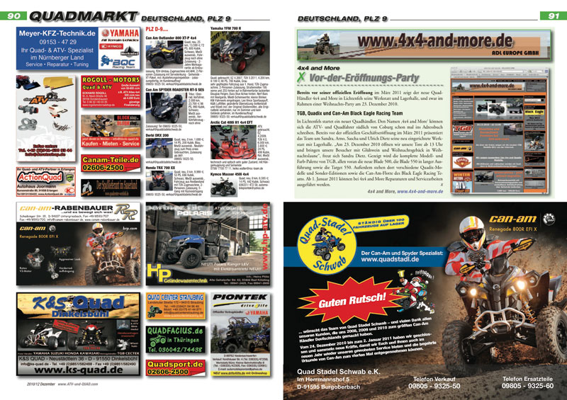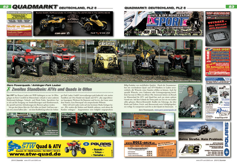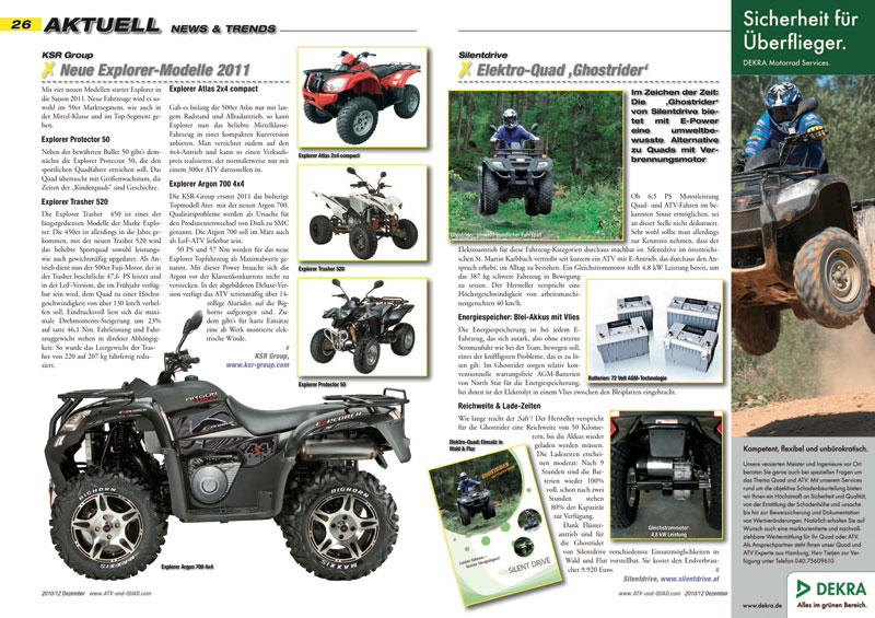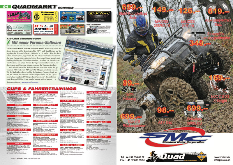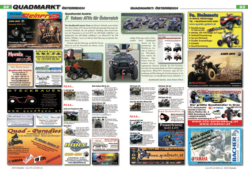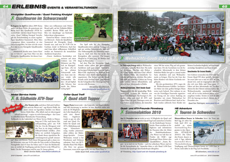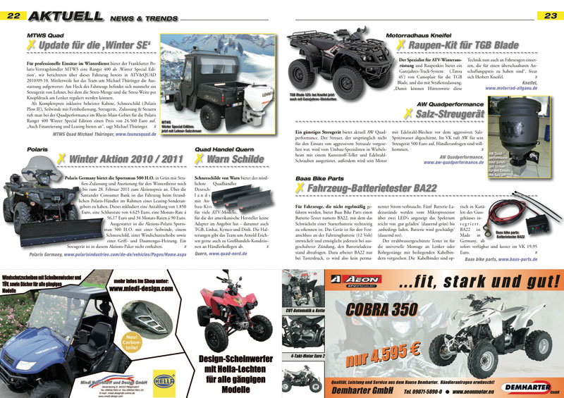 Innovationen und neue Produkte für ATVs, Quads, Buggys und UTVs werden ab Seite 16 präsentiert. In der aktuellen Ausgabe ATV&QUA 2010/12: