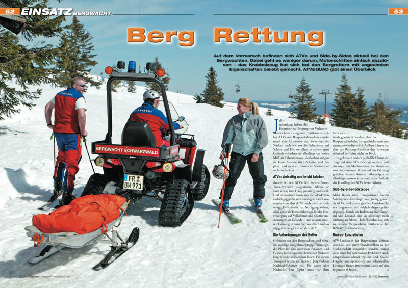 Im Rahmen einer Marktübersicht über die bedeutendsten Spezialisten in Sachen ATV-Umbauten für Bergwachten gibt ATV&QUAD einen Überblick auf Seite 59