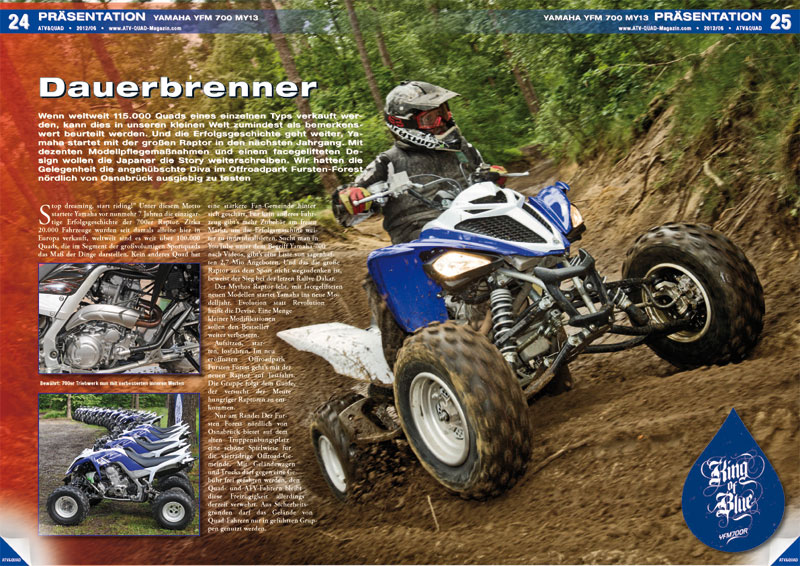 Ausgabe ATV&QUAD 2012/06 erscheint am 29. Juni 2012, und das gleich mit ZWEI Präsentationen, nämlich der neuen Yamaha YFM 700 Raptor sowie der 2013er Can-Am-Modelle.