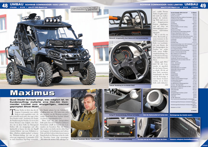 Maximus: Quad Stadel Schwab zeigt, was möglich ist. Im Kundenauftrag mutierte eine Can-Am Commander Limited zum einzigartigen, maximal gepimpten Show-Mobil.