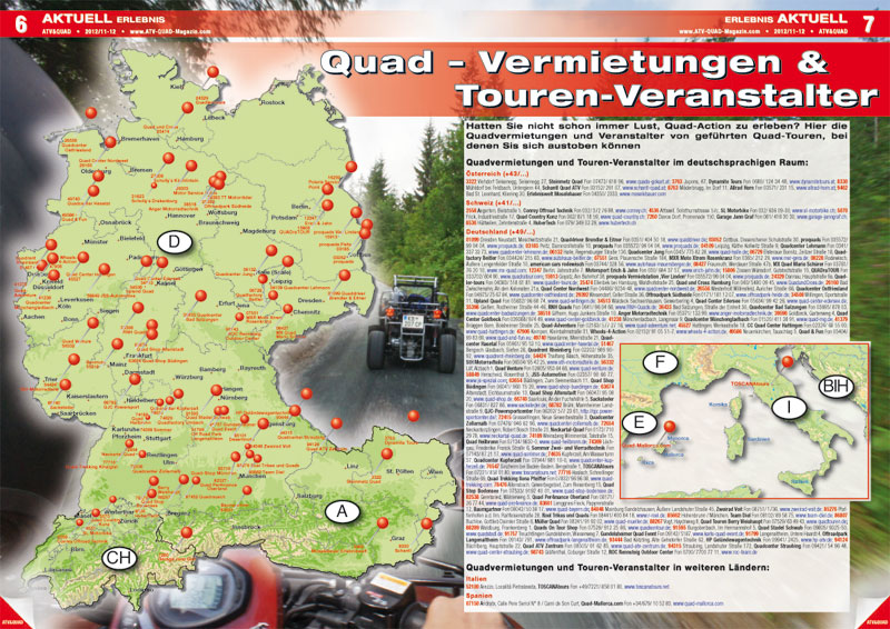 Top-aktuell präsentieren sich 71 Quad-Vermietungen und Touren-Veranstalter in Deutschland, Österreich, der Schweiz, Italien und Spanien auf Seite 6/7.