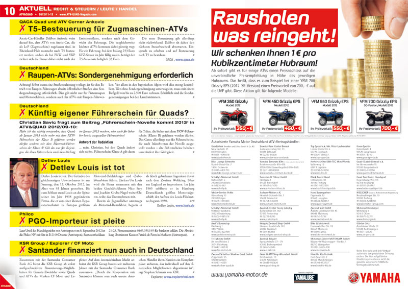 Inhalt ATV&QUAD Magazin 2012/11-12