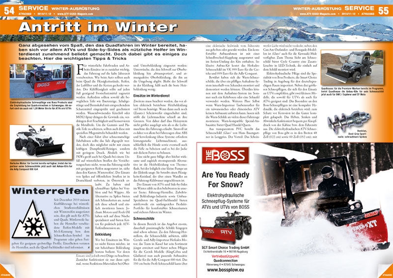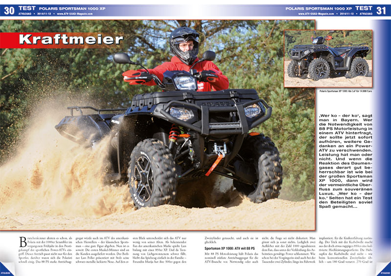 Rechtzeitig vor Weihnachten erscheint ATV&QUAD Magazin 2014/11-12 am 5. Dezember 2014, und die neue Ausgabe hat es einmal wieder in sich. Neben einer Übersicht über die Neuvorstellungen an 2015er Modellen enthält sie den Test der brandneuen Polaris Sportsman XP 1000, einen Vergleichstest von 700-Kubik Side-by-Sides und einen Vergleich von zwei Trikes. Abenteuer-Reportagen führen in die West-Alpen und auf die Halbinsel Baja California in Mexiko, und eine Marktübersicht zeigt das Angebot in Sachen Winter-Ausrüstung auf. Obendrein – wie gewohnt – die bereits bekannten Termine der 2015er Cups & Meisterschaften, Messen & Ausstellungen sowie Quadtreffen.