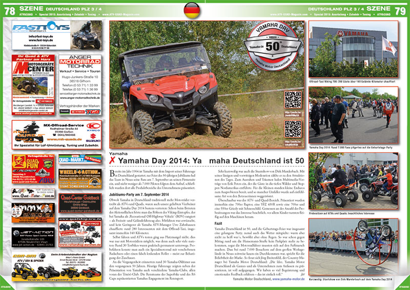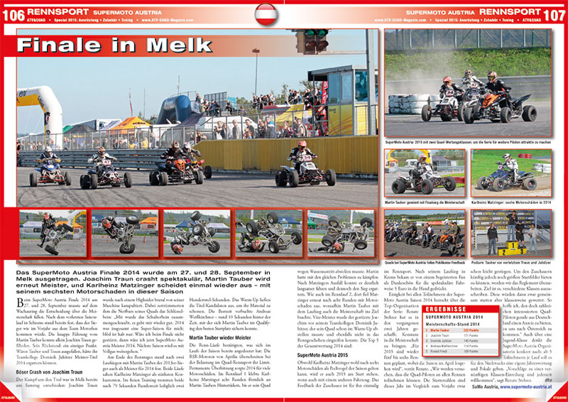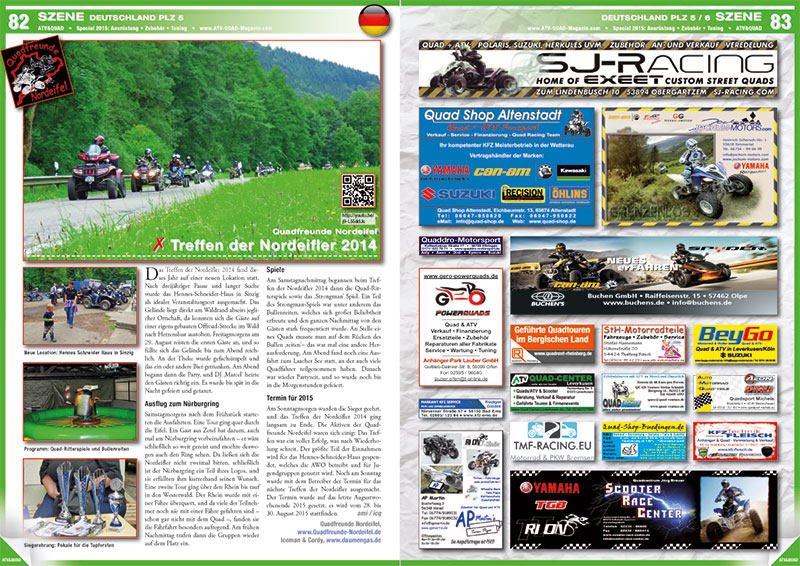 Außerdem enthält das ATV&QUAD Special 2015 einen Berücht über das QuadMagic Sommerfest, das am 13. September 2014 mit der traditionellen ,Quad-Ori‘ stattgefunden hat.