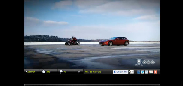 Einen ungleichen Vergleich hat Grip, das Motormagazin des TV-Senders RTL2, angestellt: Auf einer E.-ATV RC8 forderte Jens Kuck mit Matthias Malmedie im viersitzigen Ferrari Four keinen Geringeren als den schnellsten Serien-Kombi der Welt zum Sprint-Rennen heraus. Das Quad verfügt über ein Zweizylinder-Triebwerk mit 1.195 Kubik von KTM, das 175,5 PS leistet, welche ausschließlich an die Hinterräder abgegeben werden. Der Ferrari ‚FF‘ hingegen ist mit einem intelligengen Allrad-Antrieb, einem 660 PS starken Zwölfender mit 6,3 Litern Hubraum, 7-Gang-Doppelkupplung und einer Launch-Control ausgerüstet. Entsprechend der Preis-Unterschied: Während die E.-ATV bereits für vergleichsweise bescheidene 35.000 Euro zu haben ist, wechselt bei Ferraris Familien-Modell mit rund 260.000 Euro der Gegenwert einer hübschen Villa den Besitzer.