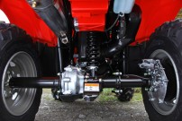 Unter den neuen, robuster wirkenden Kunststoffabdeckungen wurde auch das Fahrwerk der Foreman TRX500FE überarbeitet. Ein hochwertiges Mono-Shock-Federbein sorgt für eine leichtere Hinterradfederung und damit für mehr Komfort. Für ein agileres Handling und einen kleineren Wendekreis zeichnet ein verkürzter Radstand verantwortlich.