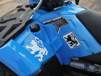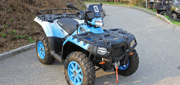 Auf seiner diesjährigen Hausmesse am 20. und 21. April präsentierte das Team um Polaris-Guru Heinz Plötz als Blickfang eine Polaris Sportsman XP 850 Forest, die von HP-Mechaniker Walter als treuem Fan von 1860 München in den Farben seines Lieblings-Clubs gestaltet ist: Das Fahrzeug ist in blau-weiß lackiert, mit den Logo-Aufklebern von 1860 München verziert, und seine Felgen sind blau beschichtet. Geadelt wurde das Fahrzeug mit dem Beinamen ‚20 Years HP Limited Edition‘, schließlich feiert HP heuer sein 20-jähriges Firmen-Jubiläum. hSo gestaltet, kostet die edle Spotsman bei HP inklusive LoF-Straßenzulassung 12.490 Euro. x