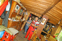 Der 61-jährige Metzger-Meister und Fleischbeschauer lebt heute gewissermaßen als Rentner im Unruhestand: In der Nähe von Goldbach mitten im Spessart besitzt er 1,5 Hektar Mischwald, Wiesen und eine Hütte, deren Ausstattung für eine Verfilmung von ‚Das Wirtshaus im Spessart‘ wohl nicht mehr viel hinzuzufügen wäre. Da wird geschnitzt und geräuchert, da hängt ein Hirschgeweih und da stehen Holzstöße für Ofen und Räucherkammer. Das Brennholz holt Wolfgang aus seinem Wald.