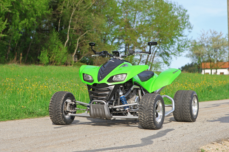 Was die Technik betrifft, zeigte RR einmal wieder, wo der Hammer hängt: Florians KFX 700 wurde ausgerüstet mit Performance-Kolben, Einspritz-Anlage und Muzzy-Auspuff, aktuell hat das Fahrzeug 840 Kubik, im Winter soll eine Tuning-Kurbelwelle den Hubraum auf 920 Kubik vergrößern – ein ausführlicher Bericht über dieses Fahrzeug folgt in Kürze… x