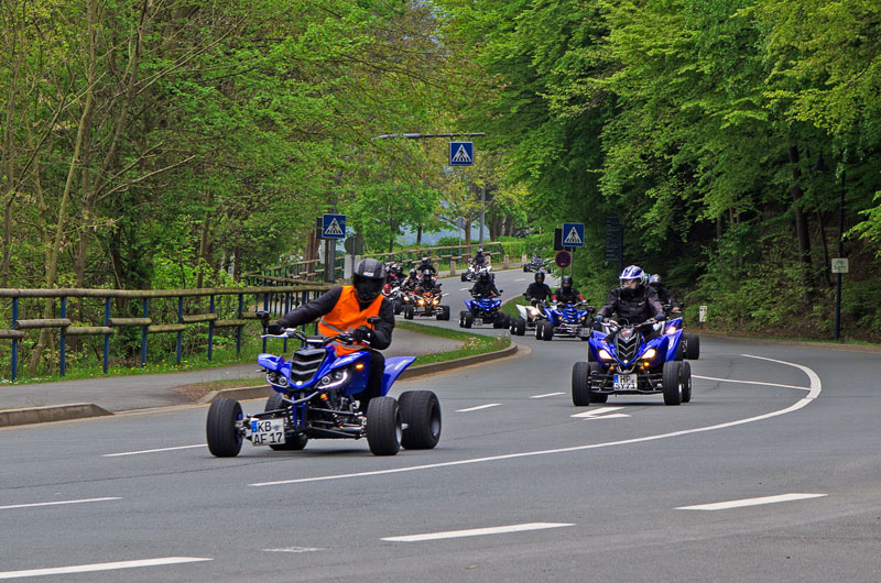 Raptoren-Fahrer aus ganz Deutschland haben sich am Wochenende in der Ederstadt getroffen, um beim Raptor Community Treffen 2014 mit einer Eröffnungsfahrt gemeinsam in die neue Quadsaison zu starten. Die meisten kennen sich nicht persönlich, wissen nicht einmal die echten Namen der anderen – sie kennen sich aus dem Forum einer gemeinsamen Internetseite, wissen oft nur die dort genutzten Fantasienamen. Die Freude am Quad-Fahren und der Spaß am Schrauben eint die Raptoren-Freunde allerdings.
