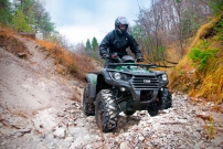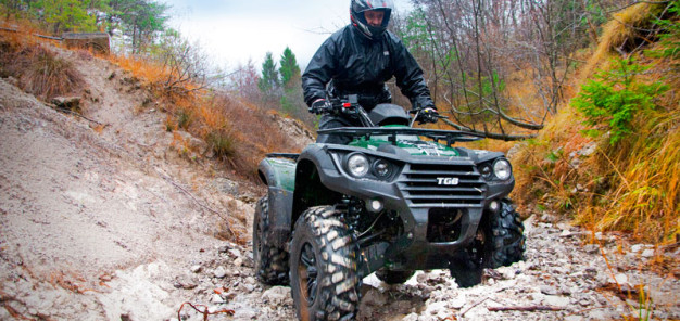 Mit Halbliter-Eintopf – genau genommen: 461 Kubik – bietet TGB sein ATV sowohl mit starrer Hinterachse als auch mit einzeln aufgehängten Hinterrädern, letztgenanntes Konstruktionsprinzip verspricht mehr Komfort, erstgenanntes mehr Robustheit, insbesondere beim Arbeiten im Wald, bei denen Äste und Felsen hier keine Achsmanschetten ruinieren können. Mit Kardan-Antrieb und Vergaser ausgestattet, leisten die Blade-500-Modelle 34 PS und kommen mit dieser Power als LoF auf deutsche Straßen.