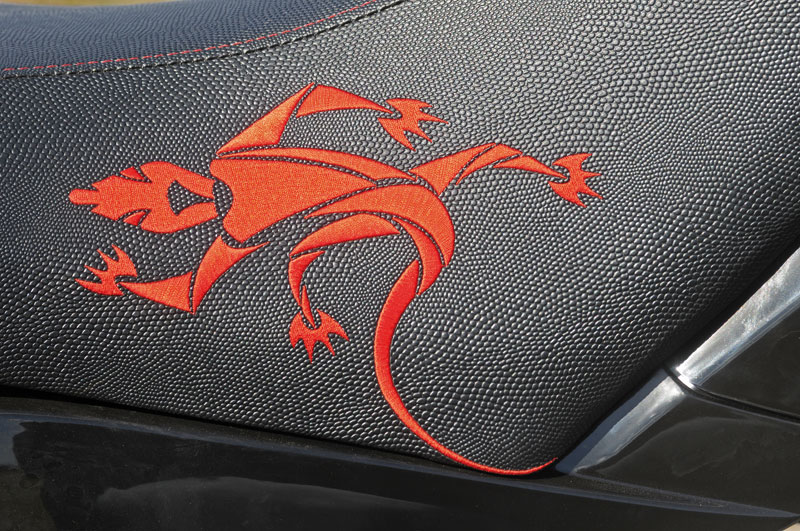 Für die Freunde exklusiver Flachmänner hat Zweirad Koch ein neues Spielzeug ins Programm genommen. Black Lizard (schwarze Echse) so heißt das auf 100 Einheiten limierte Sondermodell der bekannten 450er SuperMoto. Ganz in schwarz mit edler roter Stickerei auf dem Sitzbankbezug, so wartet die als Zugmaschine in Deutschland homologierte Maschine auf die Ausfahrt. Unterm Kleid steckt bekannt bewährte Technik. Als 450er Schalter soll die schwarze Echse die Begierden der sportlich geprägten Asphalt-Ritter befriedigen.