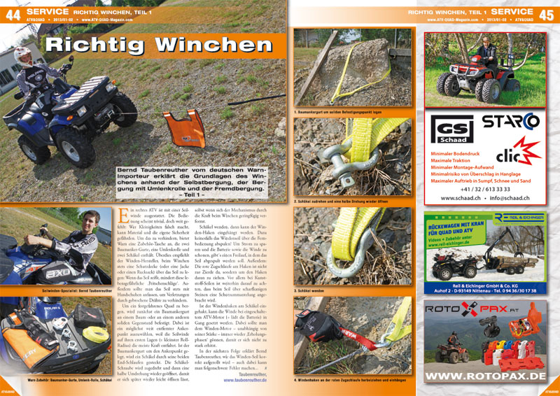 Bernd Taubenreuther vom deutschen Warn-Importeur erklärt die Grundlagen des Winchens anhand der Selbstbergung, der Bergung mit Umlenkrolle und der Fremdbergung. Teil 1 ab Seite 44…