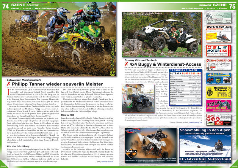 Außerdem aus der Szene Schweiz: Conrey Offroad Technik mit 4×4 Buggy & Winterdienst-Access. Ab Seite 74…