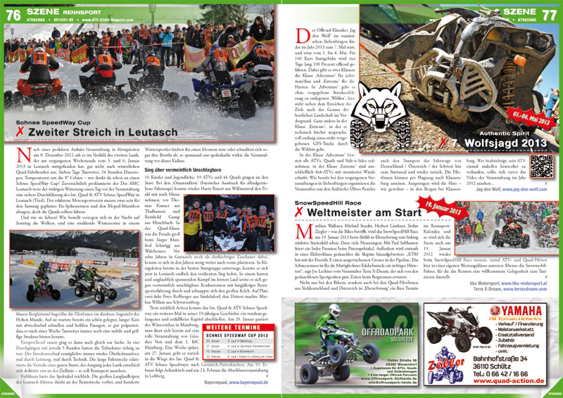 Inhalt ATV&QUAD Magazin 2013/01-02
