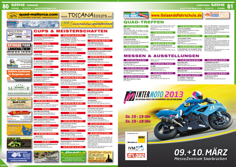 Cups & Meisterschaften; Quad-Treffen; Messen & Ausstellungen; ab Seite 80…