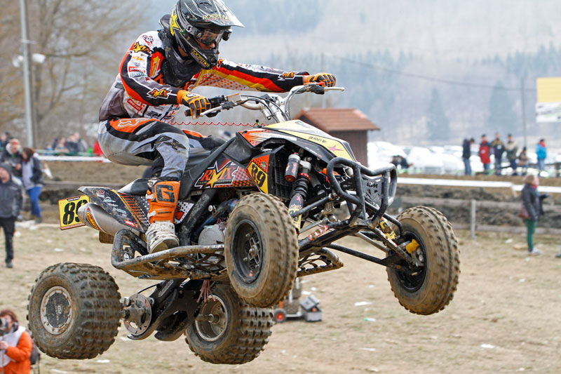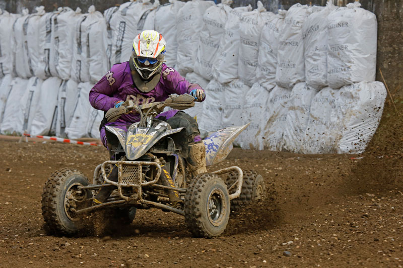 Derzeit haben Quad-Fahrer, Veranstalter und Fans die Wettergötter nicht auf ihrer Seite. Nach dem Schlamm-Desaster in Wächtersbach erwartete die Akteure im mecklenburgischen Prisannewitz neuerlich viel Regen und schwerer Dreck. Dabei hatte der Veranstalter im Vorfeld alles unternommen, um die Strecke optimal zu präparieren. Unter den widrigen Bedingungen war Überholen allerdings kaum möglich, weil durch die Rennläufe nur eine Spur halbwegs griffig gehalten werden konnte. Wer diese verließ, geriet fast unweigerlich ins Rutschen oder blieb stecken. So hatten die meisten Fahrer mehr mit ihren Quads als mit den Gegnern zu kämpfen.