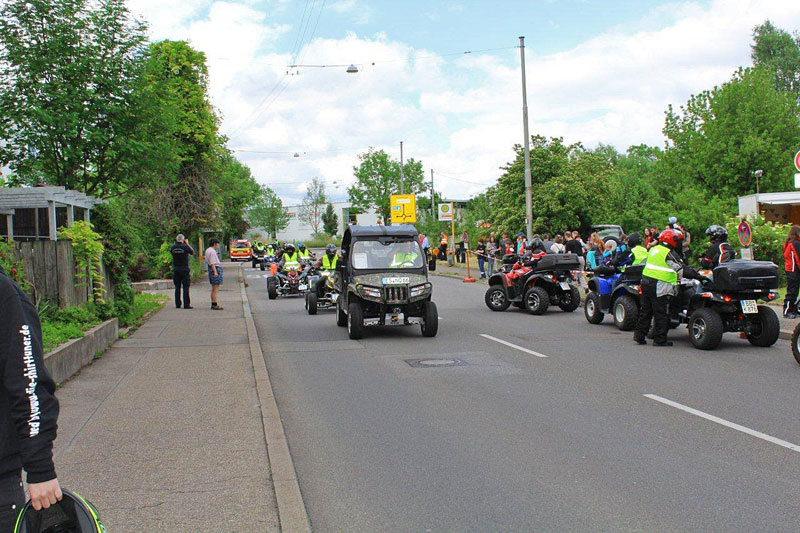 Nachdem alle Sicherheitsvorkehrungen getroffen wurden und auch ein Mannschaftswagen der Freiwilligen Feuerwehr Weilimdorf mit einem Rettungssanitäter in der Korntaler Landstraße eingetroffen war, machten sich gegen 13:30 Uhr fast 40 Quads auf die 37 km lange Strecke, die von Erich Schnaithmann sorgfältig geplant war.