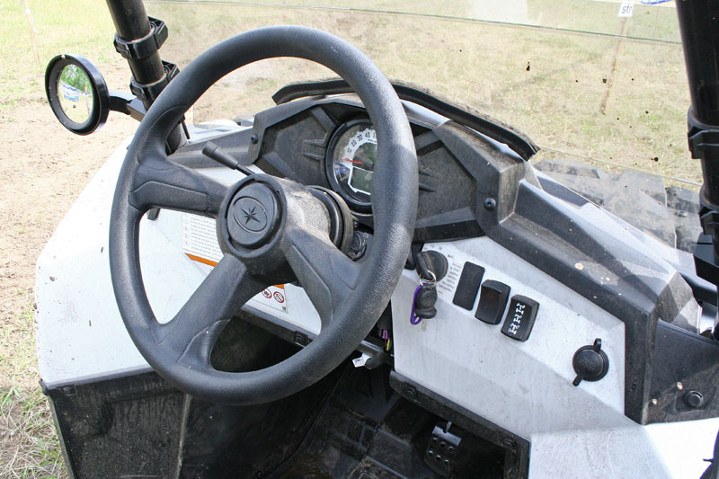 Viel mehr unkomplizierter Offroad-Fahrspaß als mit dem neuen Sportsman ACE dürfte vor allem für weniger versierte Fahrer derzeit kaum gehen. Der Sitz ist erstaunlich bequem, die Längsverschiebung allerdings hakelig. Auch Gas- und Bremspedal sind robust ausgelegt und verlangen beherzten Druck, gleiches gilt für den ebenfalls etwas widerspenstigen Schalthebel. Nicht immer trifft der Neuling auf Anhieb die gewünschte Getriebestellung.