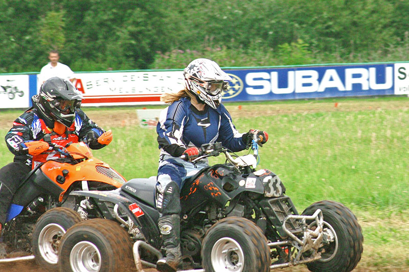Udo Scholz hatte beim 4. Quad Challenge Lauf 2014 in Melsungen wieder den Defekt-Teufel an Bord: Diesmal riss ihm der Auspuffkrümmer ab. Für solche Fälle hat der MSC Ohmtal für seine Piloten der Klasse 1, die in der Meisterschaft eingeschrieben sind, aber ein Ersatz-Quad parat. Leidtragende war in diesem Fall Corina Schomber, die an dem Wochenende das Ersatzfahrzeug eigentlich als Leih-Quad nutzen wollte, da sie kein eigenes Renn-Quad mehr besitzt. Wenn das Quad von keinem der vier Meisterschaftsfahrer benötigt wird, kann nämlich ein anderes Clubmitglied – in diesem Falle Corina Schomber – das Quad gegen eine geringe Leihgebühr benutzen. Das hat schon zweimal gut geklappt, in Diedenbergen und in Homberg konnte Cori mit dem MSC-Quad starten.