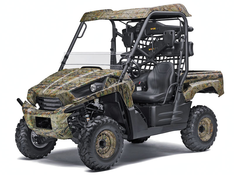 Die Camouflage-Version der Teryx 750 FI ,Camo’ wurde abgesehen von den Neuerungen bei ihren Schwestern zusätzlich mit einer dualen Gewehr-Halterung der Marke Kolpin ausgestattet und ist vom Scheitel bis zur Sohle in ,Realtree’-Camouflage-Optik gehalten.