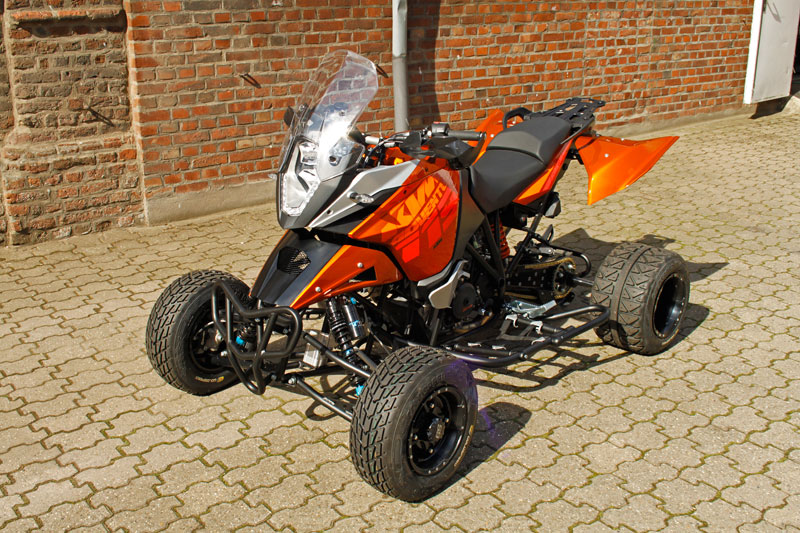 Mit der E.-ATV 1190 Adventure ist in der Edel-Schmiede in Neukirchen Vluyn ein weiterer Traum Wirklichkeit geworden. Gewiss – es war zu erwarten, dass der Quad-Hersteller dem Sportbike-Produzenten KTM folgen würde, und so tickte gewissermaßen die Uhr, nachdem KTM den Hubraum seiner Reise-Enduro von 990 auf 1190 Kubik aufgestockt hatte. Doch statt einfach den neuen Motor in das vorhandene Chassis der E.-ATV 990 Adventure zu verpflanzen, hat das Team um Clemens Eicker die Gelegenheit für eine ganze Reihe technischer Verfeinerungen genutzt, so dass die jüngst präsentierte E.-ATV 1190 Adventure neue Maßstäbe setzt.