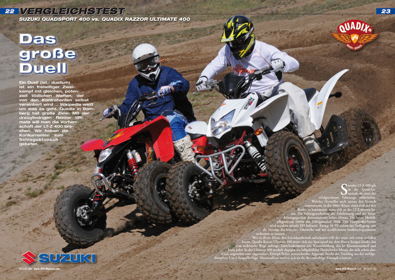 Vergleichstest Suzuki LT-Z 400 gegen Quadix Ultimate Razzor 400 Sport