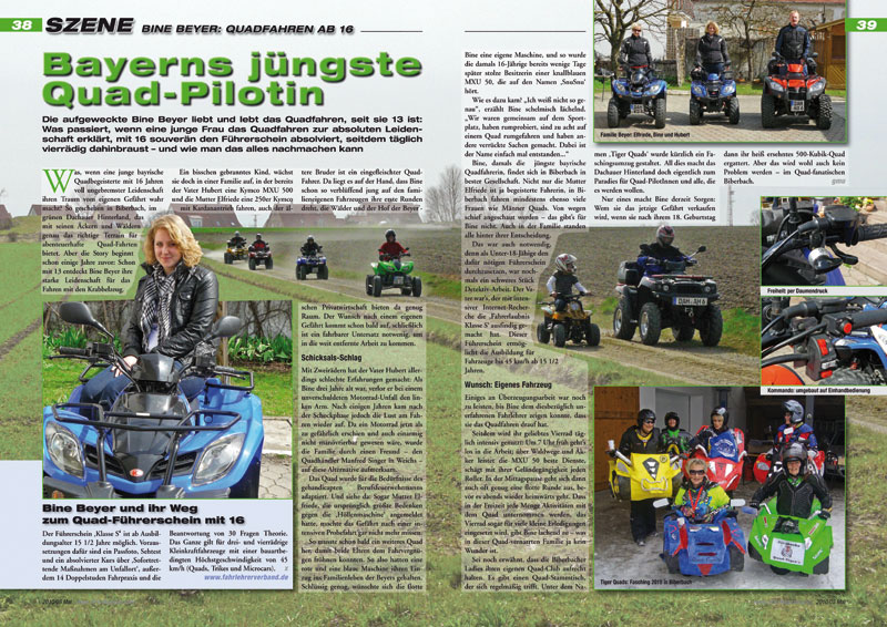 Was passiert, wenn eine junge Frau das Quadfahren zur absoluten Leidenschaft erklärt, mit 16 souverän den Führerschein absolviert, seitdem täglich vierrädig dahinbraust – und wie man das alles nachmachen kann… Einzelheiten auf Seite 38.