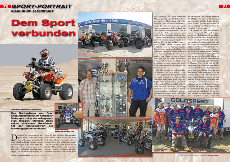 Dem Sport verbunden: Das Racing-Team von Quad Shop Altenstadt ist im nationalen Motorsport eine der erfolgreichsten Truppen. Matthias Geist, selbst erfahrener Rennfahrer, hat den Marketingwert des Sportengagements erkannt… Ab Seite 70