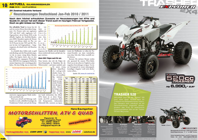 Nach dem höchst erfreulichen Zuwachs an Neuzulassungen bei ATVs und Quads im Januar hat sich dieser Trend auch im heurigen Februar fortgesetzt. Doch es gibt Anlass zur Sorge… auf Seite 10