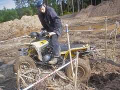 Das Schicksal nahm seinen Lauf. Es fing einmal wieder an zu regnen, und auch Ralf Kauper als amtierender Deutscher Meister hatte mit seiner Yamaha Kodiak 450 einige Anfangsschwierigkeiten. Michael Langauf, der als zweiter Fahrer in der 2×4-Klasse gelost war, musste in der GrashügelSektion abbrechen. Die danach folgenden Starter hatten die gleichen Probleme, und es gab weitere Abbrüche – wie immer ohne Schäden an Mensch oder Maschine. Der Ehrgeiz an diesem Wochenende war deutlich zu spüren.